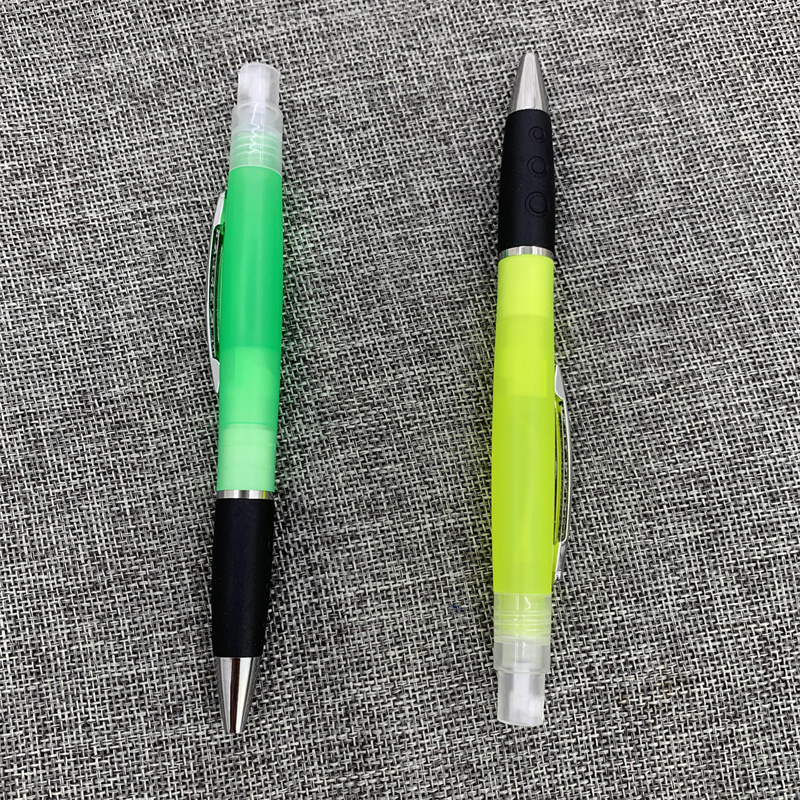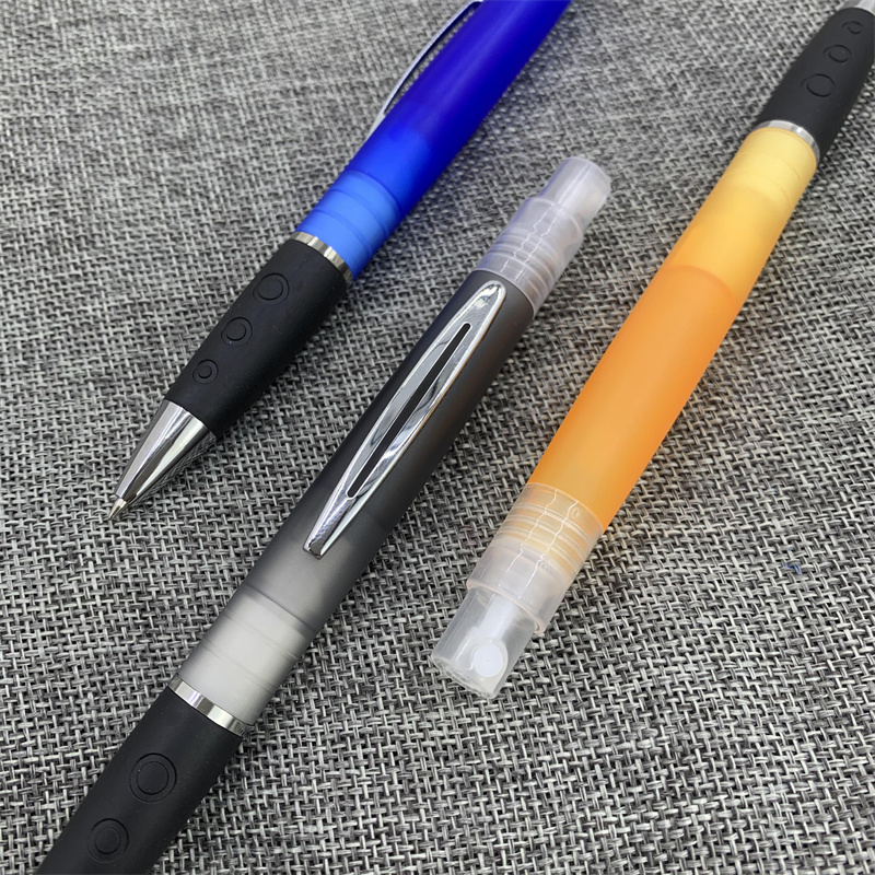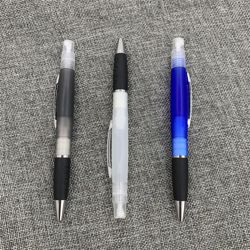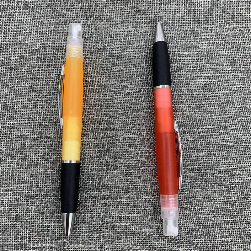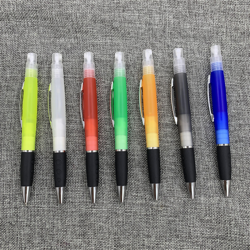 Features duo function Hand Sanitize spray and ink pen in ABS Plastic barrel with Silicone stylus tip. Contains over 75% Ethyl Alcohol and Kills 99% of germs when used correctly. Sanitize may be refilled at your local drug store.