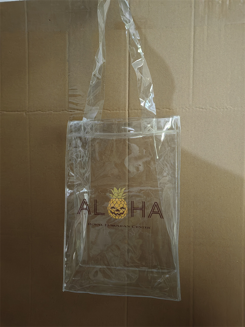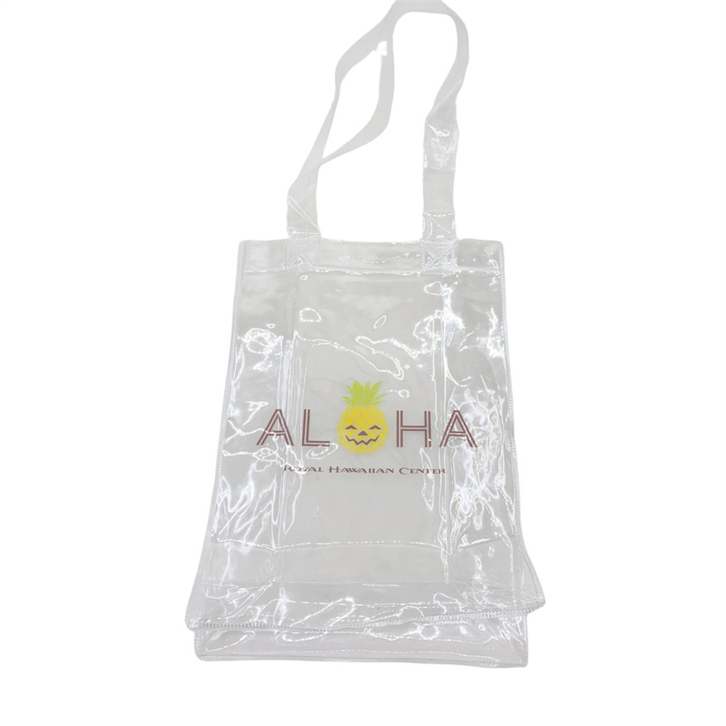 This bag is made of 8mil PVC plastic and with same material handle. Heat sealing method for edging. Nice shopping or household promotional gift for your event. Silkscreen logo can be customized to promote your brand. Several colors are available for choice. Low minimum order quantity. Your own design is available to set-up the mold for customization.